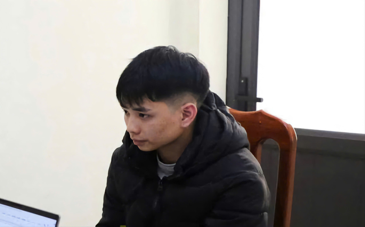 Bị can Trần Trung Hiểu tại cơ quan điều tra sau khi "thông chốt" đâm gãy xương gót chân một chiến sĩ cảnh sát giao thông đang làm nhiệm vụ.