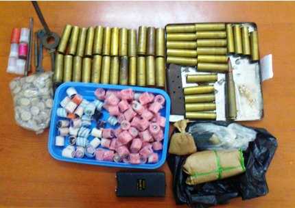 Khẩn trương khám xét nơi ở của Phong, cảnh tiếp tục phát hiện và thu giữ 20 viên đạn, 1 khẩu súng hai nòng tự chế, 24 vỏ đạn đã sử dụng, 0.5 kg hạt chì để làm đạn hoa cải và 3 thanh kiếm Nhật.