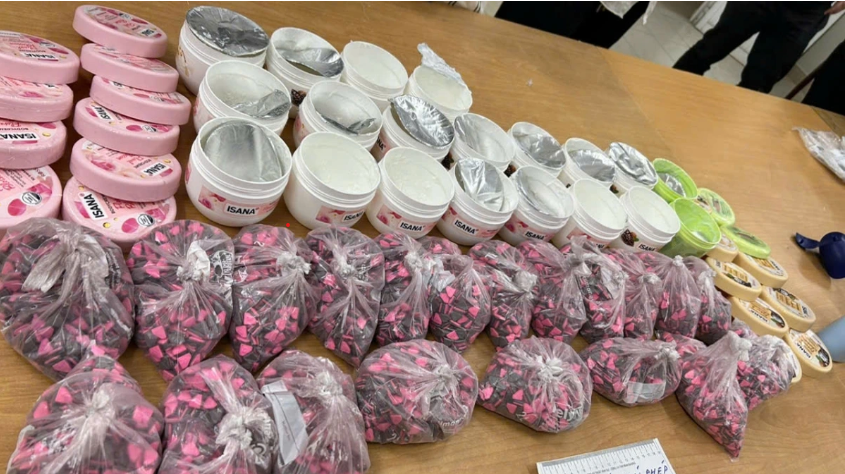 Tiến hành kiểm tra, lực lượng chức năng phát hiện 15,8kg ma túy tổng hợp (thuốc lắc) được giấu kín trong các gói bánh kẹo và chai mỹ phẩm.