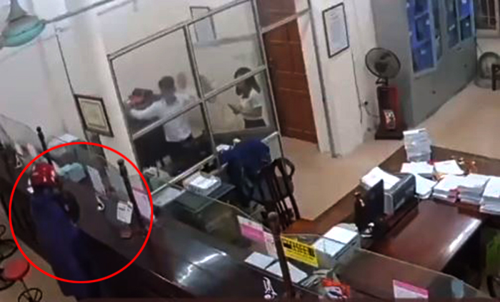 Vào quầy giao dịch, người đàn ông đặt một chiếc túi xuống bàn và chĩa súng vào nhân viên, yêu cầu bỏ tiền vào túi. Lo sợ, hai nhân viên vào kho và chốt cửa không ra ngoài.