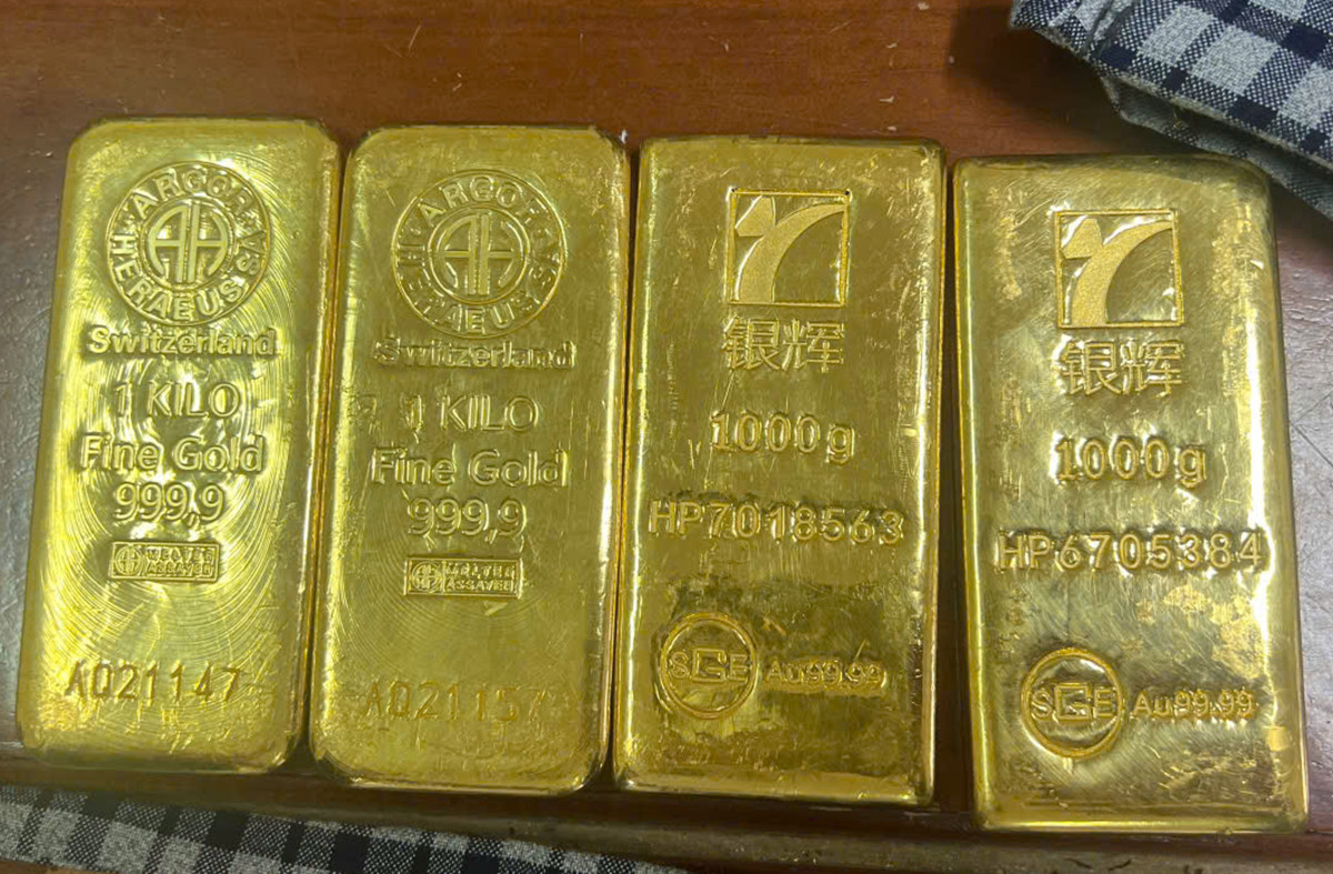 Lực lượng Biên phòng lập biên bản thu giữ 4 thỏi kim loại có ký hiệu Au 999,9, tổng trọng lượng 4 kg.