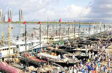 | Tàu cá Trung Quốc tại cảng Tam Á, tỉnh Hải Nam, chuẩn bị cho một đợt đánh bắt trái phép trên biển Đông - Ảnh: China Daily |