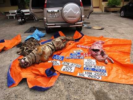 | Con hổ bị ép khô cùng các xương hổ và các tang vật khác. |