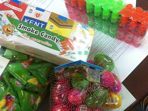 Đại úy Hoàng khuyến cáo: "Những sản phẩm bánh kẹo kèm đồ chơi này rất bắt mắt, giá lại rẻ chỉ 1-2 nghìn/sản phẩm nên được rất đông trẻ em trong độ tuổi học sinh cấp 1, cấp 2 ưa thích. Tuy không phát bệnh ngay nhưng về lâu về dài rất nguy hiểm đối với sức khỏe của các em. Do vậy, các vị phụ huynh học sinh không nên mua cũng như khuyên nhủ con em mình không mua và xử dụng loại thực phẩm này".