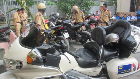 | Đội CSGT Rạch Chiếc tiến hành kiểm tra, xác minh toàn bộ số xe mô tô ‘khủng’ vi phạm (ảnh: N.D) |