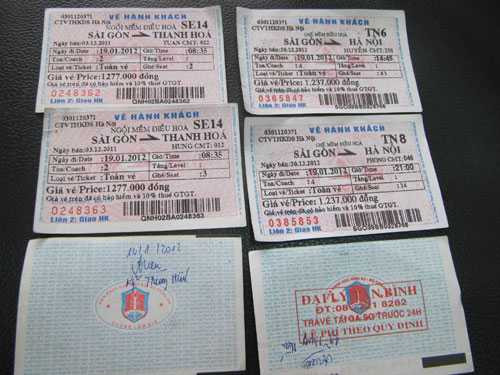 | Cột phải bên trên là 2 vé tàu thật, bên trái là 2 vé tàu giả được cơ quan chức năng phát hiện trước đây |