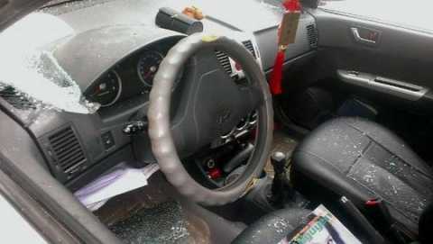 | Chiếc xe ô tô của nhà báo Quang bị đập vỡ nhiều bộ phận |