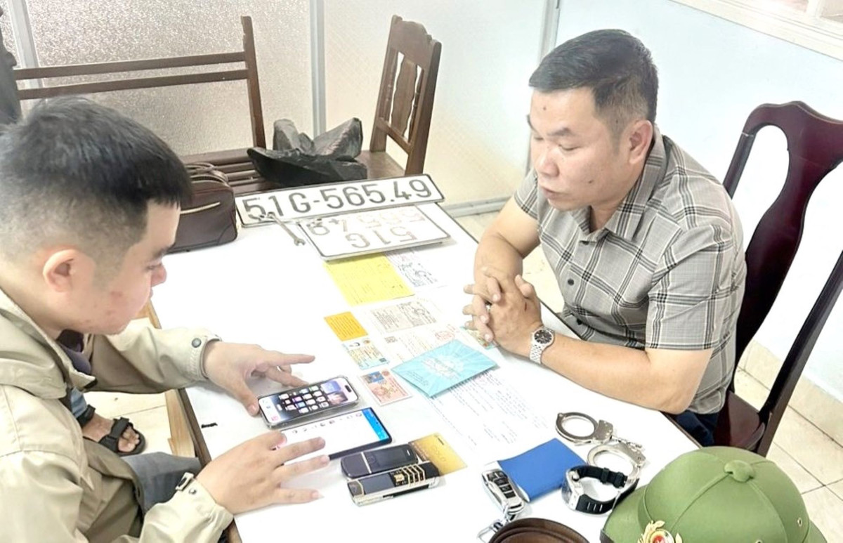 Khám xét nơi ở của Sơn, cơ quan công an phát hiện, tạm giữ Giấy chứng minh Công an nhân dân giả mạo mang tên Lê Thừa Sơn, còng số 8 cùng dây nịt, mũ của lực lượng công an.
