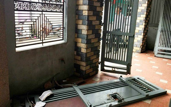 Sau khi đâm sập cửa nhà chị O., Đức đã ném mìn vào khu vực cầu thang và xông vào nhà châm lửa đốt.