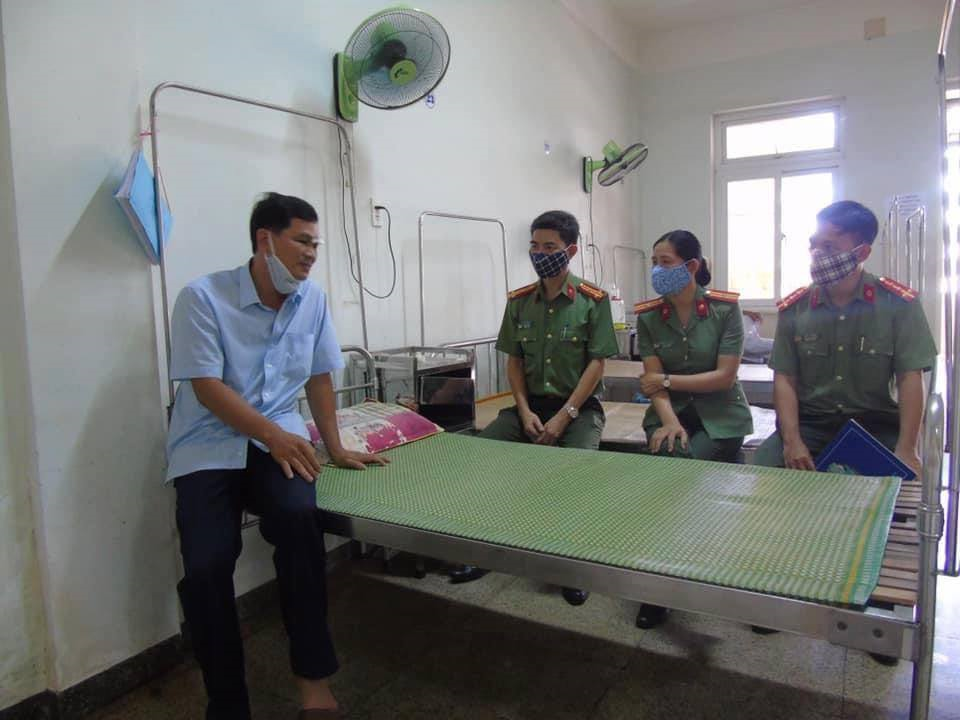 Đoàn thanh niên Công an tỉnh Quảng Ngãi đến thăm hỏi Đại úy Văn. (Ảnh: B.Đ)