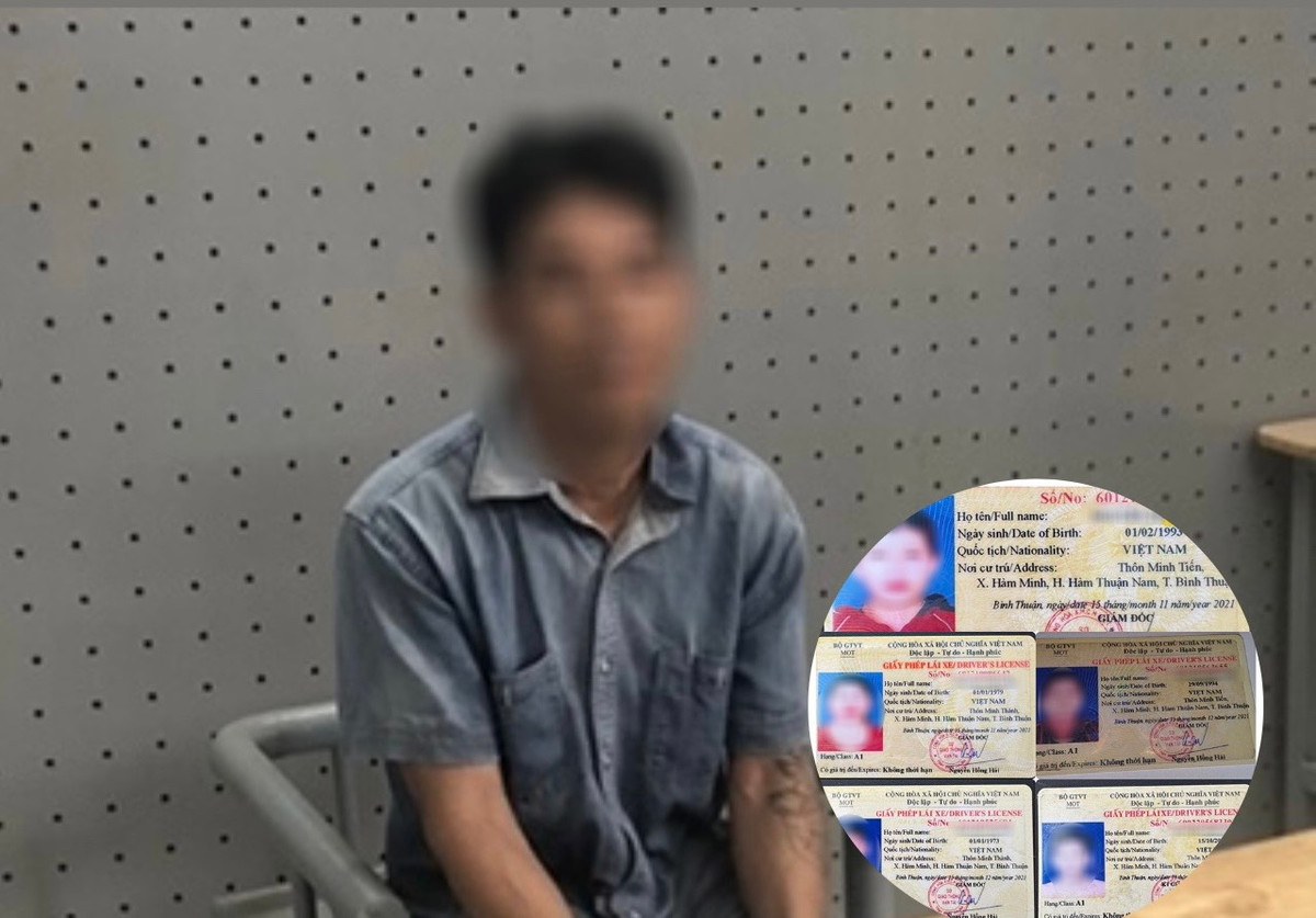 Chiều 31/5, thông tin từ Công an huyện Hàm Thuận Nam, đơn vị đã bắt khẩn cấp N.V.T (49 tuổi, thường trú Đồng Nai, tạm trú xã Hàm Minh, huyện Hàm Thuận Nam) để điều tra làm rõ về hành vi “sử dụng tài liệu giả của cơ quan tổ chức là giấy phép lái xe giả” quy định tại khoản 2, Điều 341 Bộ luật Hình sự.