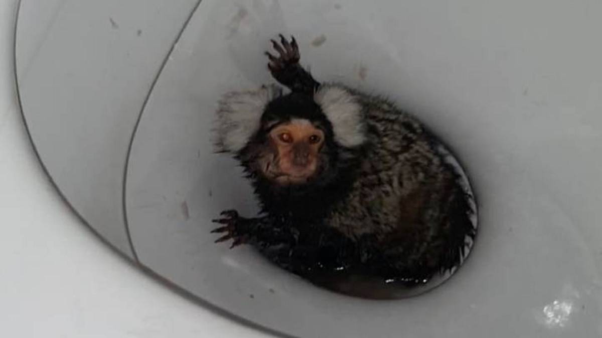 Chú khỉ rét run nằm trong bồn cậu bị xả nước.