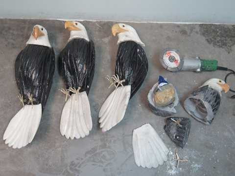 | Gần 2kg ma túy được giấu, ngụy trang trong tượng chim đại bàng |