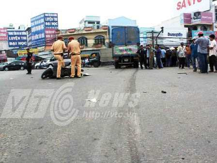 Lực tông mạnh khiến chiếc xe máy bị hất văng nhiều mét trên đường, chị Hiệp bị cuốn vào gầm xe tải và bị kéo lê trên đườngkhoảng 20m.