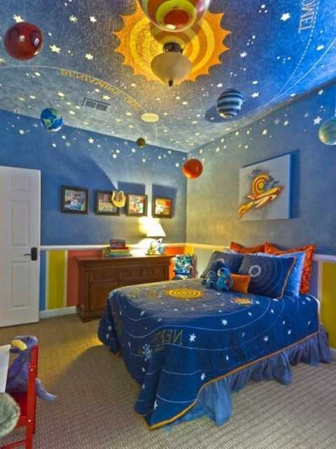 Nếu chọn một ý tưởng thống nhất cho việc thiết kế nội thất phòng ngủ của bé, căn phòng sẽ trở nên thú vị hơn nhiều. Đó có thể là bối cảnh vui nhộn với những nhân vật hoạt hình mà bé thích, một không gian cổ tích với chiếc giường sắt uốn và những hình vẽ thần tiên hay bay bổng sáng tạo trong vũ trụ bao la....