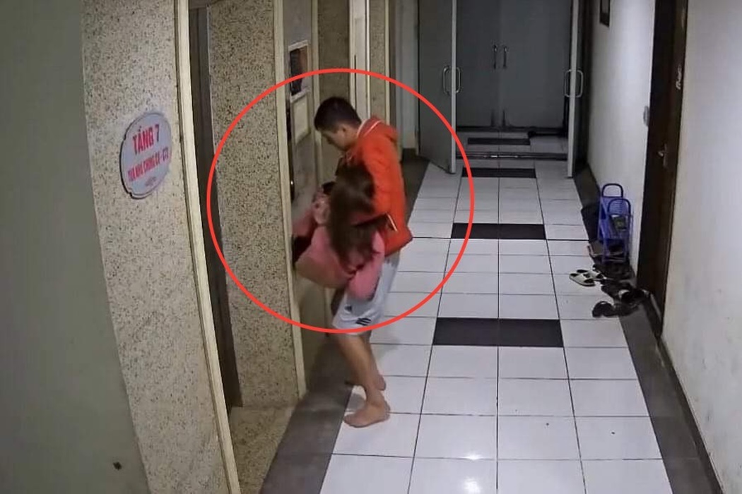 Sau khi ra tay với vợ, Đặng Quang Sơn đưa nạn nhân tới bệnh viện. (Ảnh: Chụp từ clip)