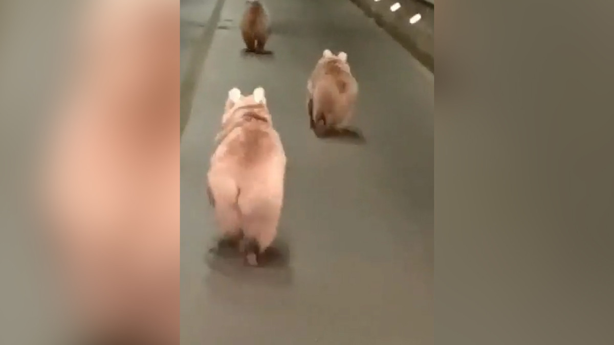 Bất ngờ 3 chú gấu con chạy trên đường cao tốc