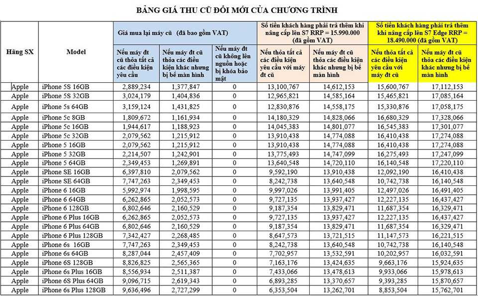 Những iPhone được tham gia chương trình này bao gồm iPhone 5S, iPhone 5c, iPhone 5, iPhone SE, iPhone 6 1, iPhone 6 Plus, iPhone 6s, iPhone 6s Plus.