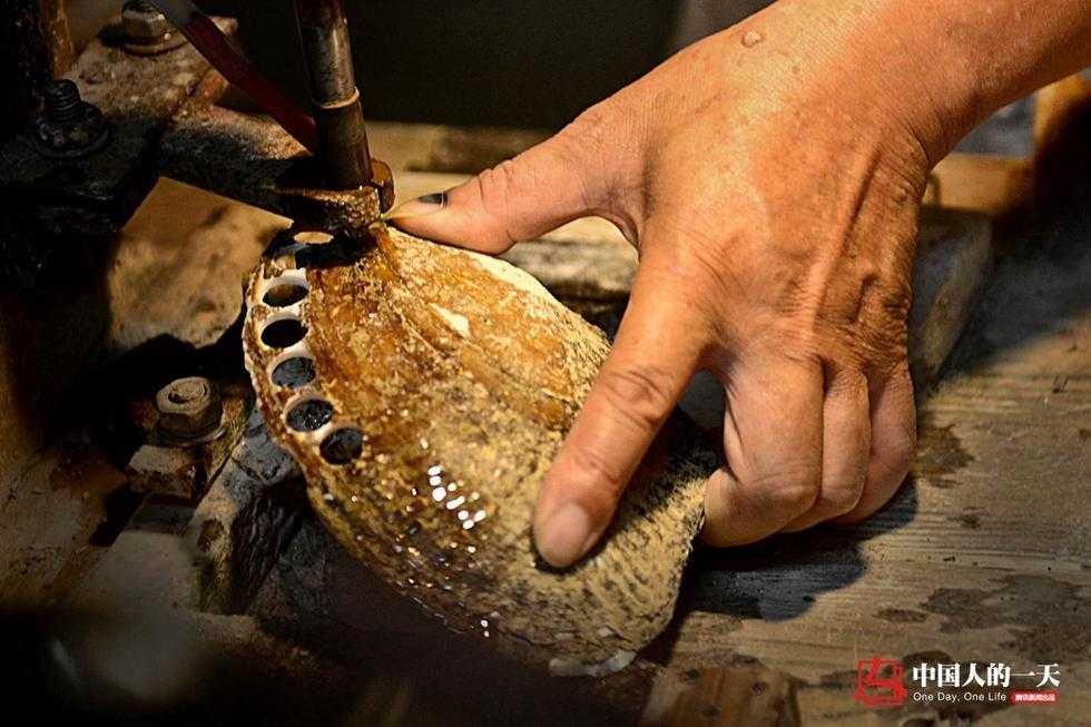 Thợ thủ công xử lý từ những mảnh trai thô