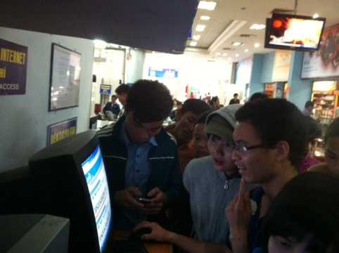Nhiều khách dùng máy tính tại ga Sài Gòn để đặt mua vé qua mạng (Ảnh: P.L)