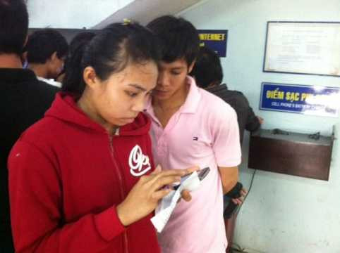 Một bạn trẻ dùng điện thoại lên mạng để mua vé tàu Tết mà vẫn thành công (ảnh: P.L)
