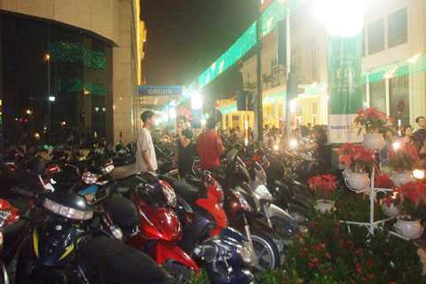 | Điểm gửi xe máy giá 3.000 đồng ở sát Hồ Gươm là một hiện tượng lạ. |