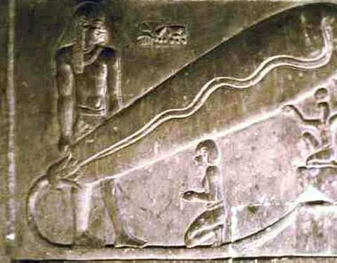 | Hình ảnh người Ai Cập cổ đại sử dụng đèn điện được tìm thấy ở đền Dendara. |