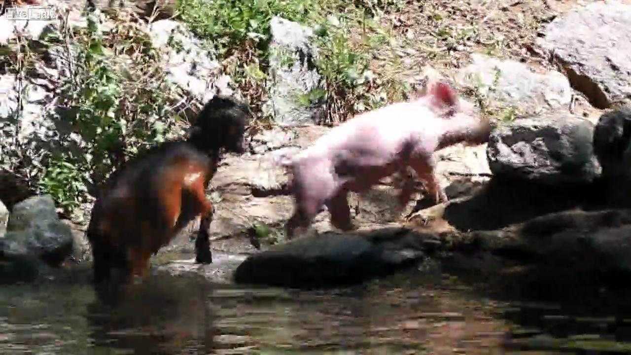 Bất ngờ với clip heo con cứu dê suýt chết đuối