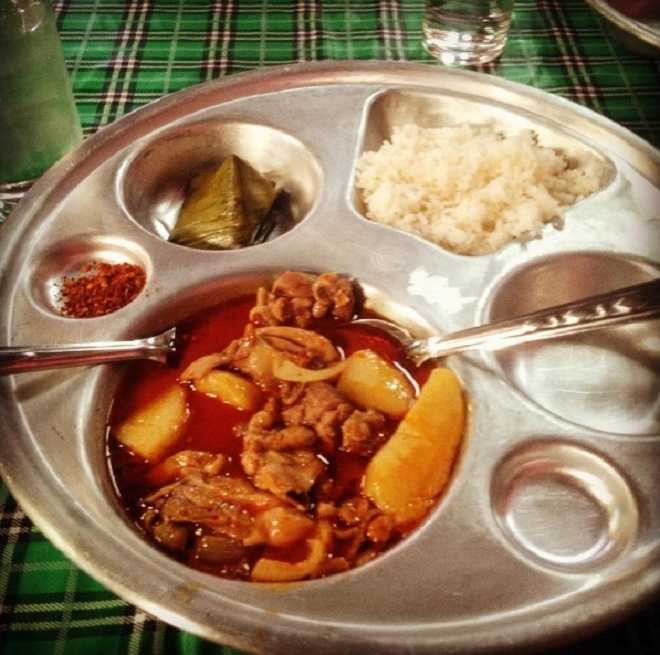 Thái Lan: Người Thái ăn rất cay, do đó trường học này cũng phục vụ học sinh món thịt hầm cay ăn cùng cơm nóng và tráng miệng bằng một miếng bánh gói trong lá chuối.
