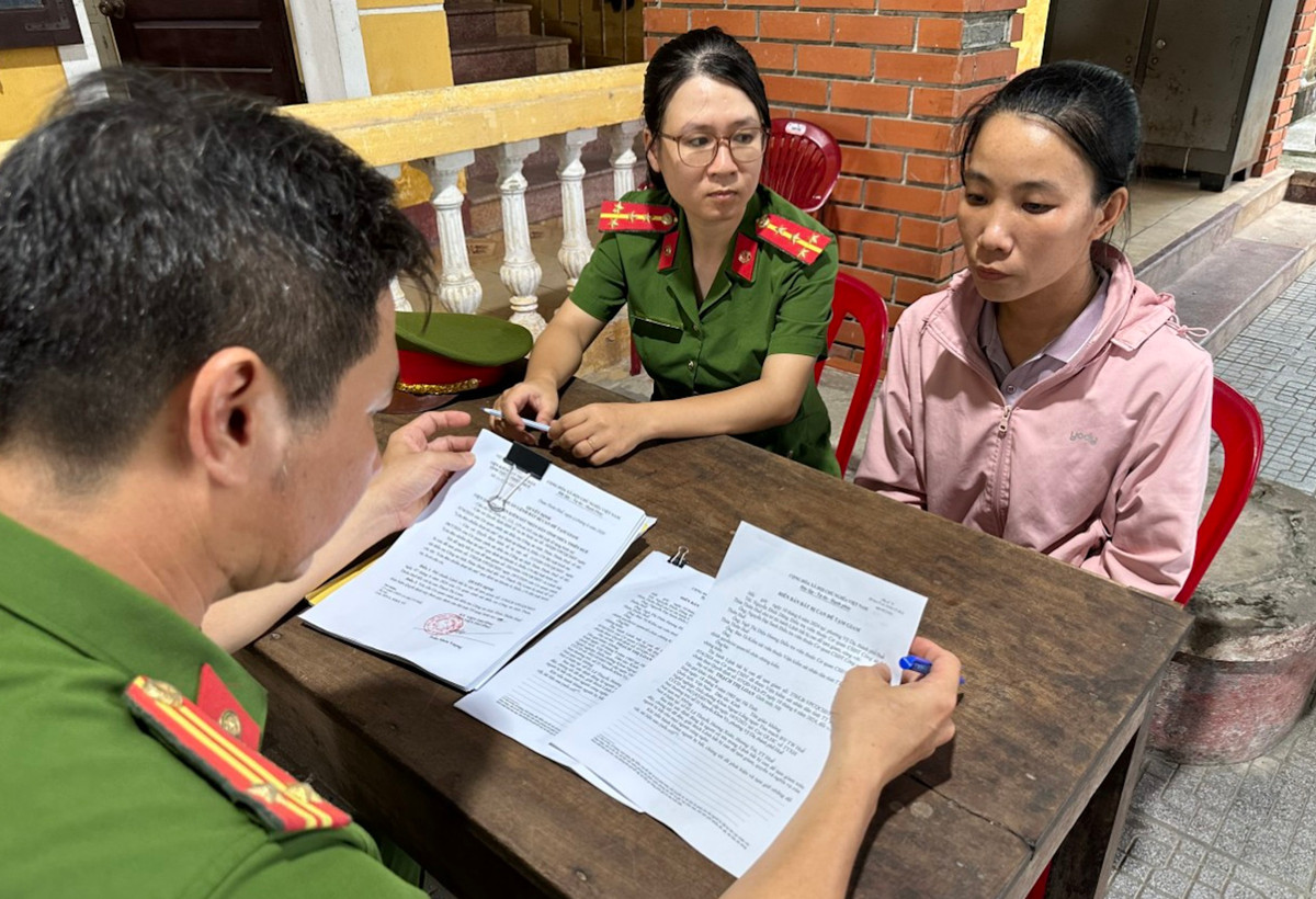 Cán bộ công an đang làm việc với Thạch Thị Loan. (Ảnh: CACC)