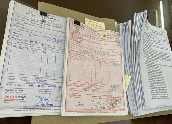 Khám xét nơi ở của Sơn, Đạo và Anh, Cơ quan CSĐT Công an TP Thanh Hoá đã thu giữ nhiều tập hóa đơn VAT, các con dấu của các Công ty và nhiều tài liệu liên quan đến việc mua bán hóa đơn VAT của các đối tượng này.