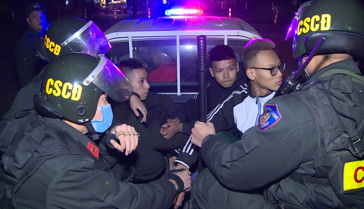 Tiếp đó, ngày 17/1, sau khi củng cố các tài liệu, chứng cứ thu thập được và nắm rõ quy luật hoạt động của nhóm đối tượng thanh thiếu niên thường xuyên có hoạt động chống đối, Phòng CSCĐ Công an tỉnh Thanh Hóa đã áp dụng các biện pháp nghiệp vụ khống chế, bắt giữ và lập biên bản xử lý 7 đối tượng gồm: Lê Ngọc Hậu (SN 2003); Nguyễn Xuân Tú (SN 2005); Mai Tuấn Linh (SN 2003); Bùi Vũ Hiếu (SN 2006); Nguyễn Xuân Dương (SN 2004) đều ở phường Đông Hương; Nguyễn Văn Nam (SN 2004, ở phường Đông Vệ) và Nguyễn Trà My (SN 2006, ở phường Đông Thọ, TP.Thanh Hóa).