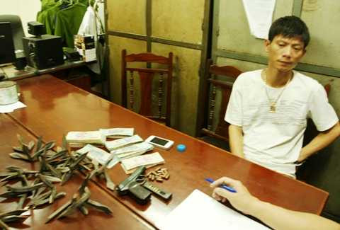 | Tú cùng tang vật tại cơ quan công an. |