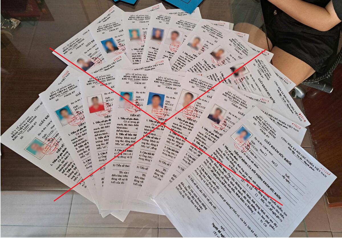 Trong số các tang vật thu giữ có nhiều giấy khám sức khỏe giả của một bệnh viện đa khoa khu vực, nhiều con dấu giả của cơ quan, tổ chức, trong đó có con dấu giả của Sở Y tế, Sở Giáo dục và Đào tạo Đồng Nai cùng nhiều trường đại học, cao đẳng, như Đại học Cần Thơ, trường Đại học Công nghiệp TP.HCM, trường Đại học Sư Phạm TP.HCM…