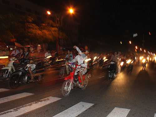 Trên đường đi, các đối tượng lái xe lạng lách, đánh võng phóng với tốc độ 80-90km/h. Nhóm này còn liên tục rồ ga, bấm còi inh ỏi.