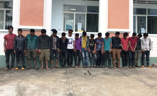 Nhóm thanh niên bị bắt tại cơ quan điều tra.