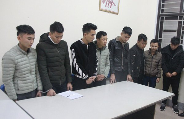 Theo đó, Ngày 17/1, sau khi thu thập đủ chứng cứ và bằng các biện pháp nghiệp vụ, lực lượng chức năng đã tóm gọn 8 nam thanh niên gồm: Nguyễn Văn Thường (24 tuổi); Nguyễn Văn Hiếu (25 tuổi); Trần Văn Toản (23 tuổi); Hồ Văn Thành (20 tuổi); Nguyễn Xuân Toản (23 tuổi); Nguyễn Đức Nhật (24 tuổi); Hồ Đình Tài (24 tuổi) và Nguyễn Xuân Trung (28 tuổi), tất cả đều trú xã Quỳnh Lâm, huyện Quỳnh Lưu (Nghệ An).