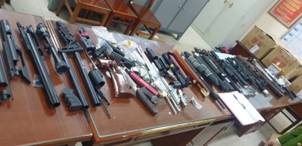 Kiểm đếm sơ bộ tại chỗ, công an phát hiện có hơn 10.000 viên đạn chì và hơn 1.000 linh kiện dùng để lắp ráp súng tự chế (súng hơi, súng săn).