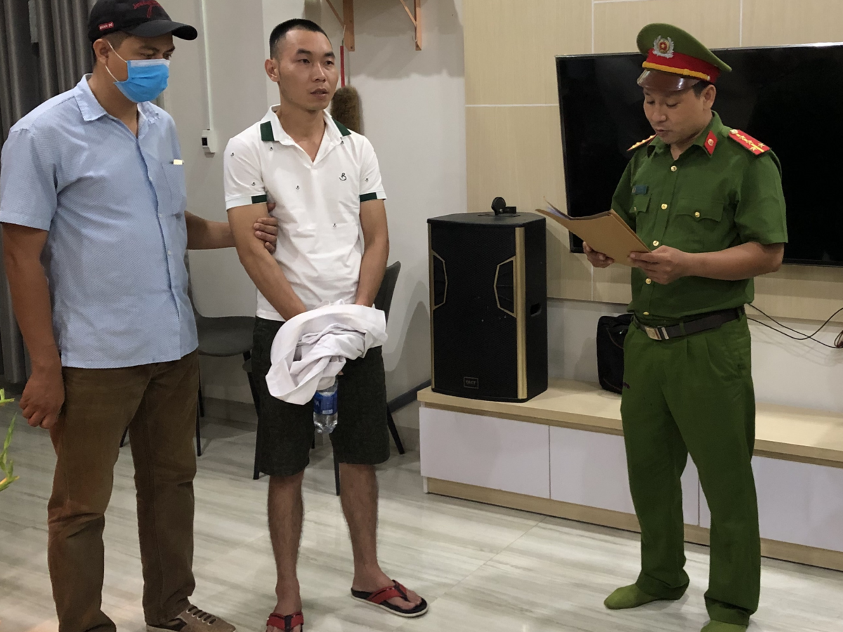 Công an đọc lệnh bắt "ông trùm" Trần Quốc Bảo Duy (giữa) cầm đầu đường dây buôn bán ma tuý liên tỉnh.