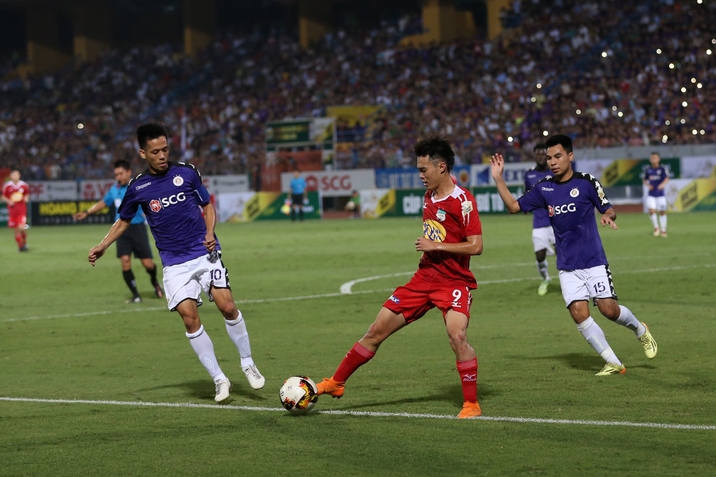 CLB Hà Nội nhanh chóng chiếm lại sự chủ động sau đó. Không có sự chỉ đạo của HLV Chu Đình Nghiêm, đội bóng thủ đô vẫn tấn công mạch lạc và tạo ra thế trận áp đảo.