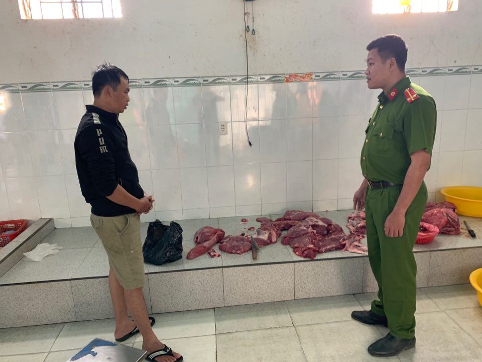 Theo đó, khoảng 6h ngày 27/12, tổ công tác thuộc Đội Cảnh sát điều tra tội phạm về kinh tế - ma túy, Công an huyện Krông Pắk kiểm tra đột xuất cơ sở mua bán thịt gia súc, gia cầm do ông Lê Hưng (SN 1976, ngụ số 17 Nguyễn Lương Bằng, tổ dân phố 12, thị trấn Phước An, huyện Krông Pắk) làm chủ.