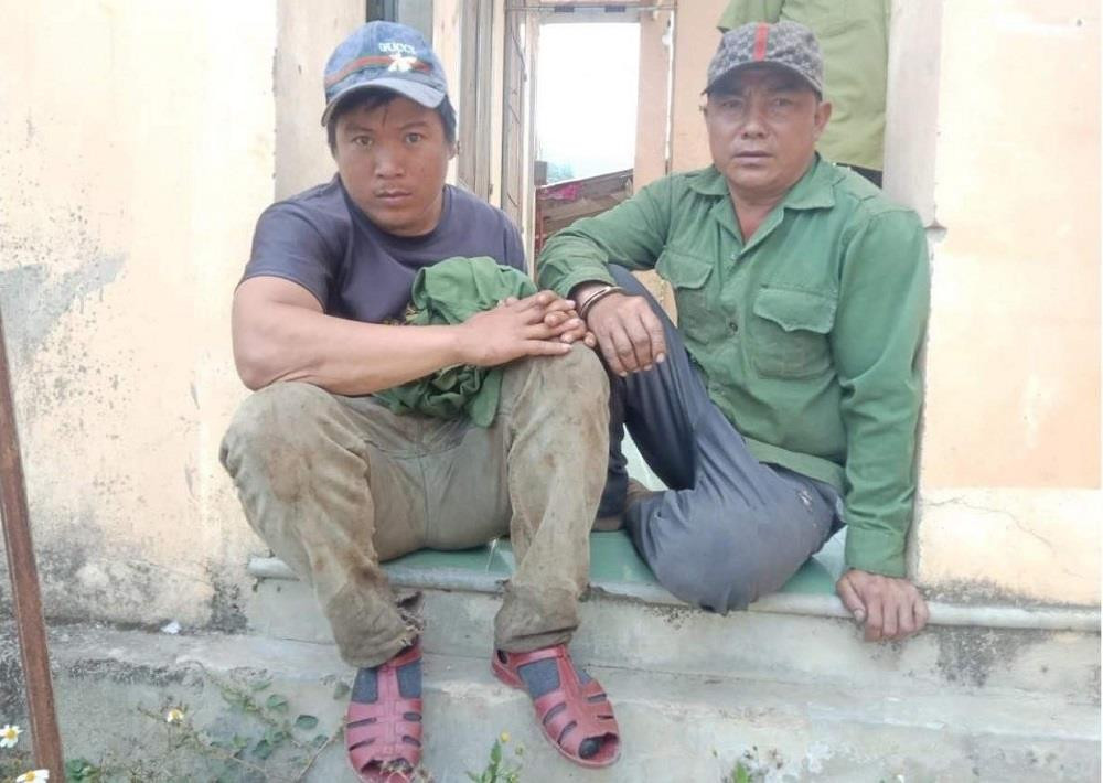 Nhóm 'lâm tặc' khai thác gỗ trái phép bị lực lượng chức năng bắt tại trận. (Ảnh: H.N)