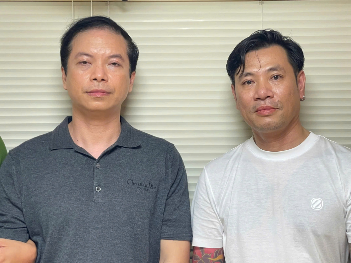 Mã Thanh (trái) - tài xế xe Bentley và Ngô Duy Đông tại cơ quan công an. (Ảnh: CACC)