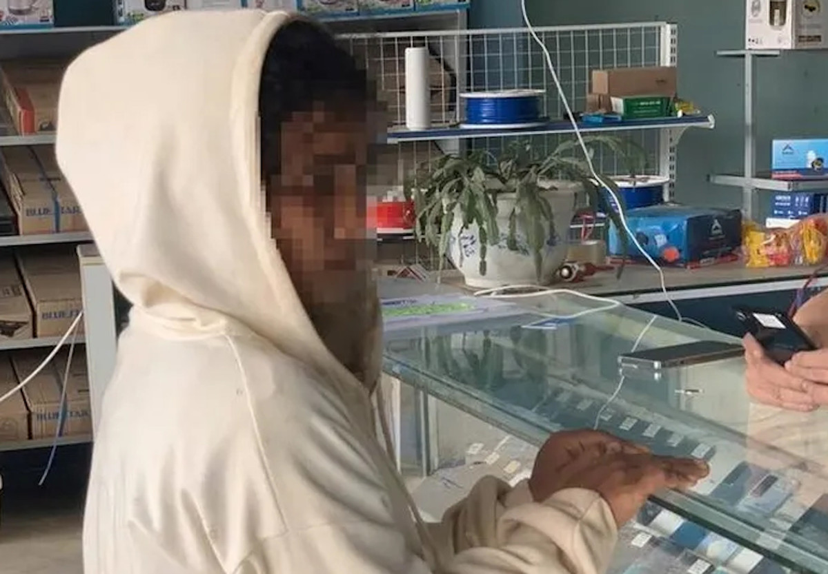 Trước khi vào tiệm điện thoại, H'Sim Byă cắm sẵn chìa khóa vào xe máy và quay xe lại để tiện cho việc tẩu thoát.