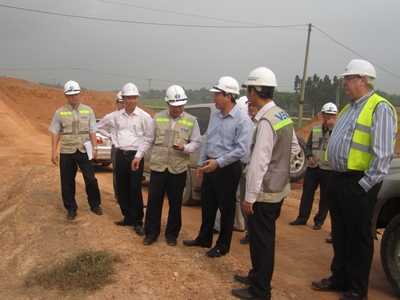 | Thứ trưởng GTVT Nguyễn Hồng Trường (thứ 3 từ phải sang) kiểm tra hiện trường dự án cao tốc Hà Nội - Lào Cai. |