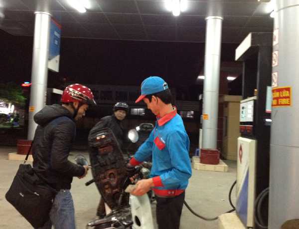 | Cửa hàng xăng dầu Cầu Diễn tối 22/2 có 3 cột bơm hoạt động, song định mức tối đa bán ra đối với xăng là 30.000 đồng/lần, khách mua nhiều hơn bị từ chối. Ảnh: Lan Anh. |