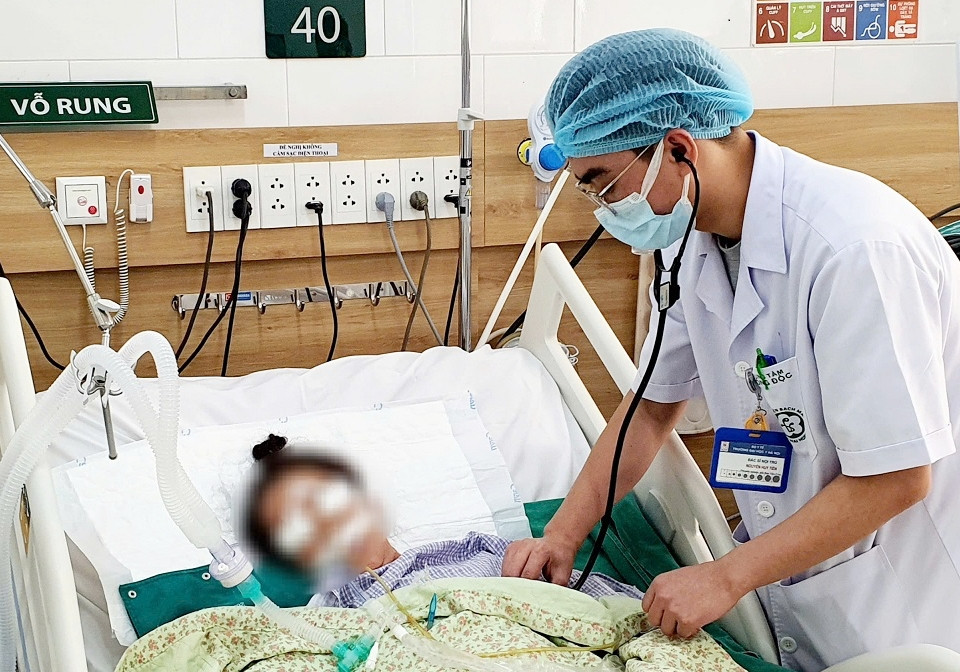 Sau khi được điều trị bằng thuốc kháng giáp, kiểm soát nhịp tim, bù dịch và kháng sinh trong 3 ngày, bệnh nhân vẫn hôn mê, phải thở máy kiểm soát.