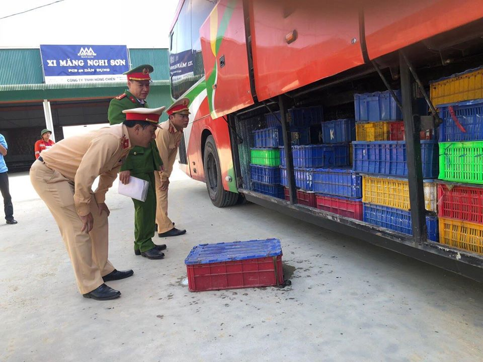 Vào khoảng 8h ngày 25/12, trong lúc tuần tra kiểm soát trên tuyến QL1A, đoạn qua thị xã Kỳ Anh (Hà Tĩnh), Đội Tuần tra kiểm soát 6-1 thuộc Phòng Cảnh sát giao thông Hà Tĩnh phối hợp phòng Cảnh sát Môi trường phát hiện xe khách mang BKS 51B 278.65 chạy theo hướng Nam - Bắc có nhiều biểu hiện nghi vấn nên ra hiệu lệnh dừng xe.