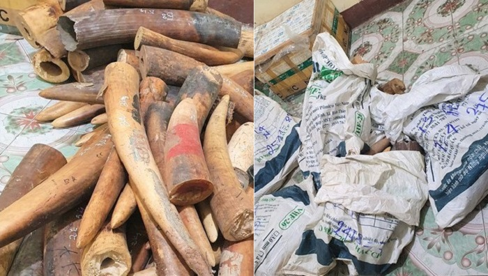 Hơn 2 tạ ngà voi bị CSGT phát hiện bắt giữ. (Ảnh: BNA)