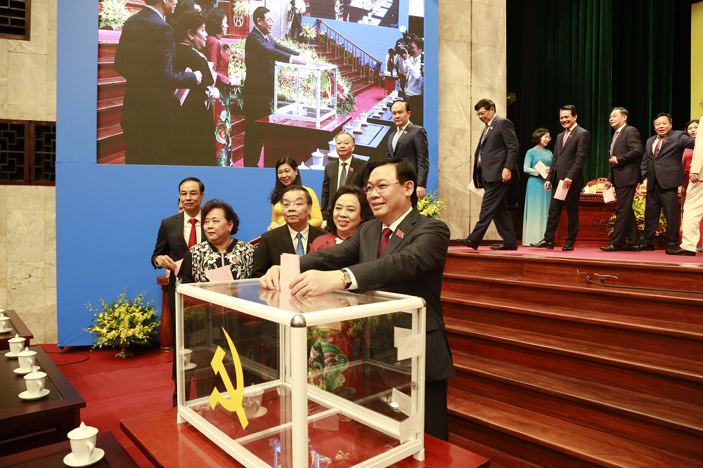 Các đại biểu bỏ phiếu bầu Ban Chấp hành Đảng bộ TP lần thứ XVII nhiệm kỳ 2020 - 2025.